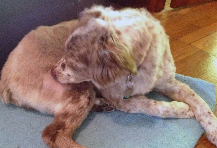 - Pes se škrábe, drápe, otírá či intenzivně líže: kousnutí od blechy způsobují nejenom svědění kůže, ale různé alergické reakce, které mohou vyústit až v akutní dermatitidu.